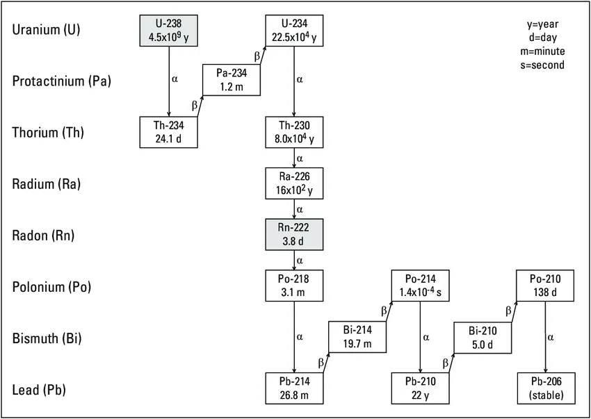 Voor de meeste isotopen (zoals uranium, kalium‑40, koolstof‑14):